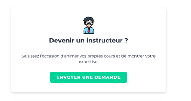 Pour postuler en tant que formateur veuillez allez sur votre profil > paramètres > envoyer une demande pour devenir instructeur, veuillez renseigner le formulaire vous serez contacté par notre équipe et vous serez notifié par email après l’étude de votre dossier